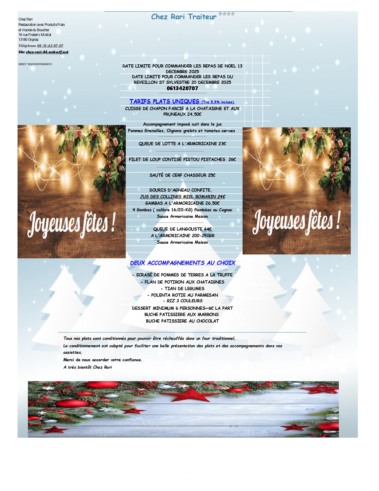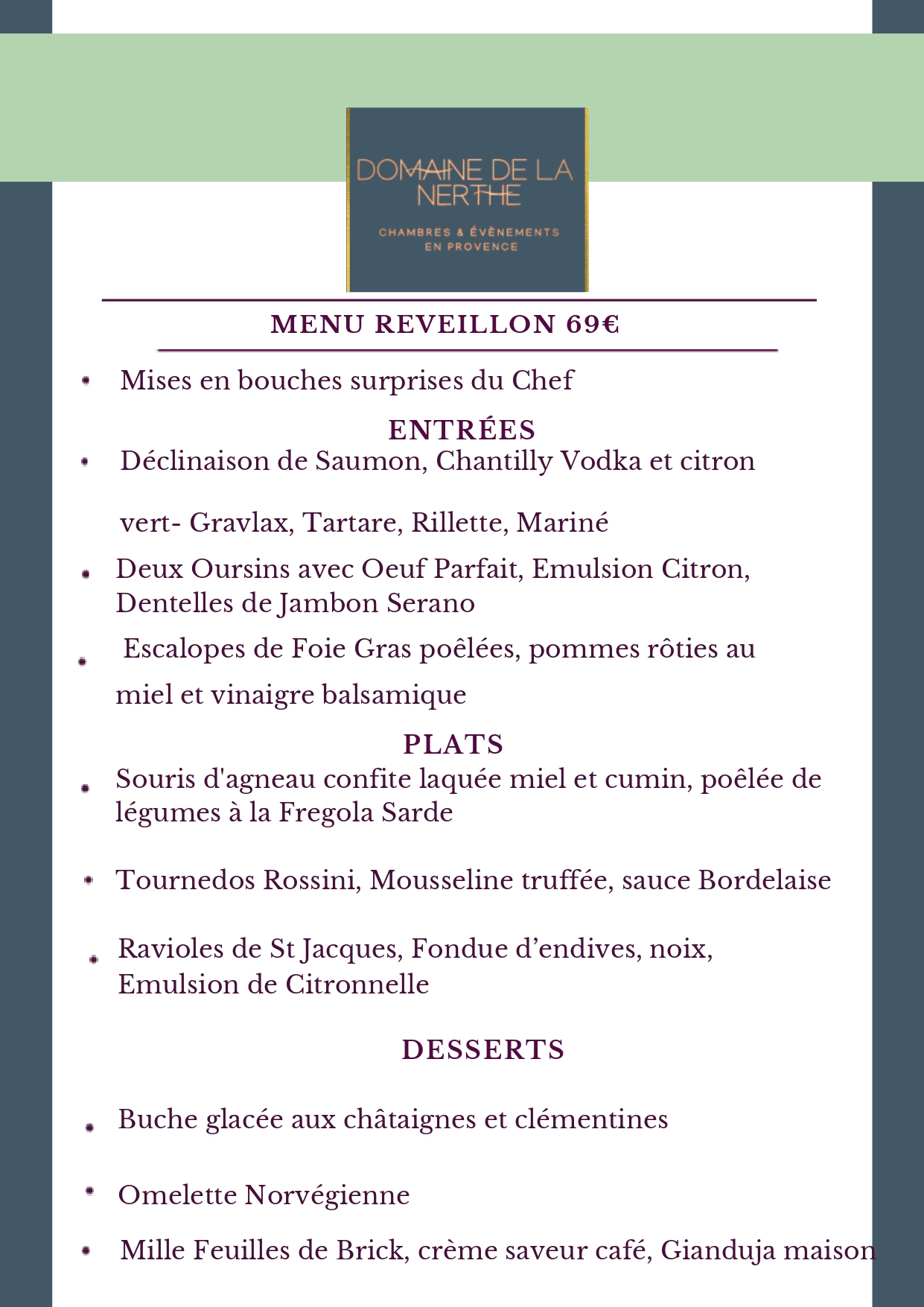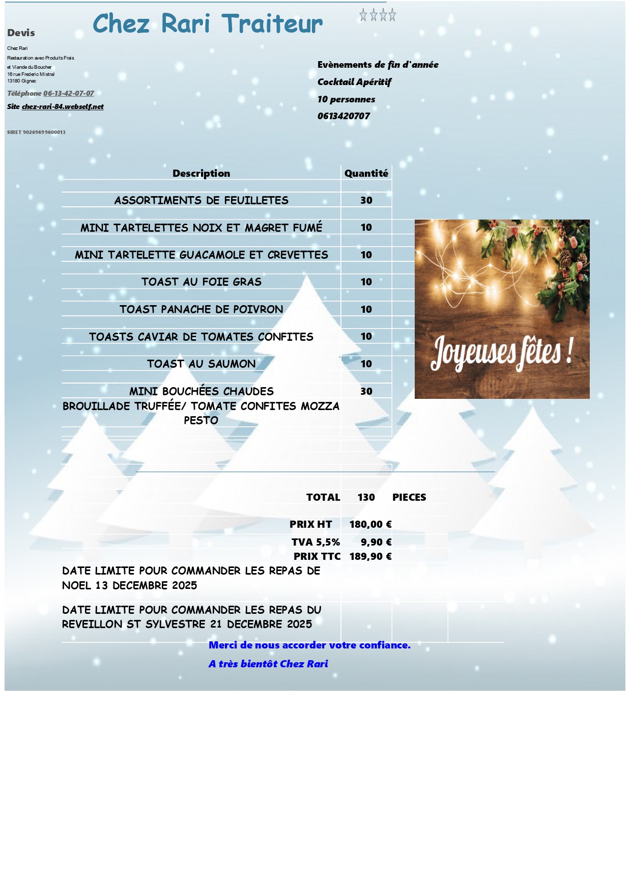 Menu Réveillon – Formule Cocktail apéritif – Plats traiteurs